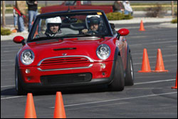 Princess Isabelle drives a spunky MINI Cooper convertible in a custom pink color. Her car was inspired by my husband’s red MINI, which he uses to race in local autocross events. Here he is to the right, driving the car as a friend rides along.