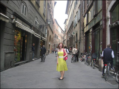 Here I am in Lucca, Italy last May. What a gorgeous medieval town—with great gelato, too!